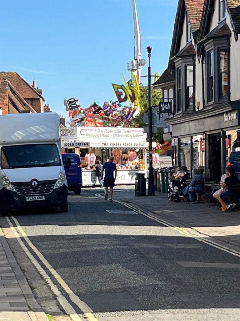 In the afternoon Helen and I left Glenn to finish the gardening and went for a shopping trip to the quaint town of Thame. There was unusual pounding music when we got there – and we discovered the fair had taken over the Main Street. The large fair rides were in the narrow streets scarily close to the small buildings.