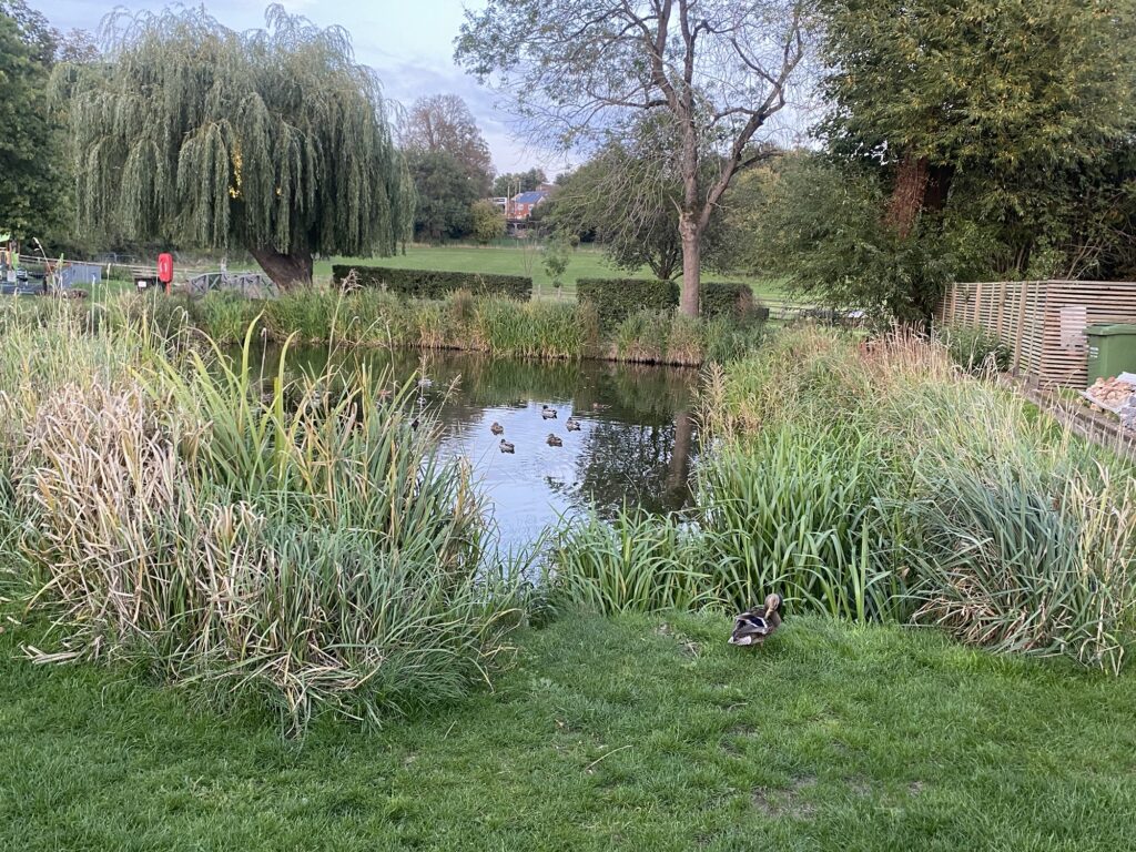 We had time to check out the village – starting with the essential village duck pond. The pub with castle tower was in the middle of the street.